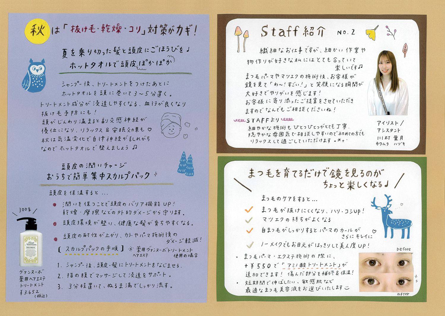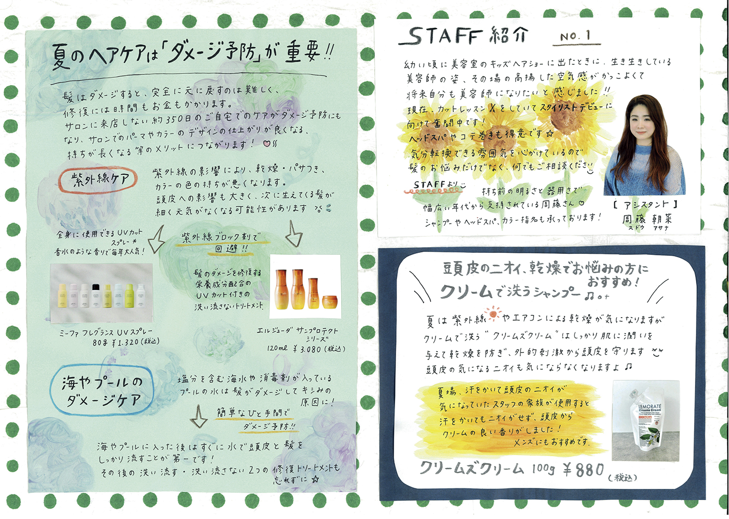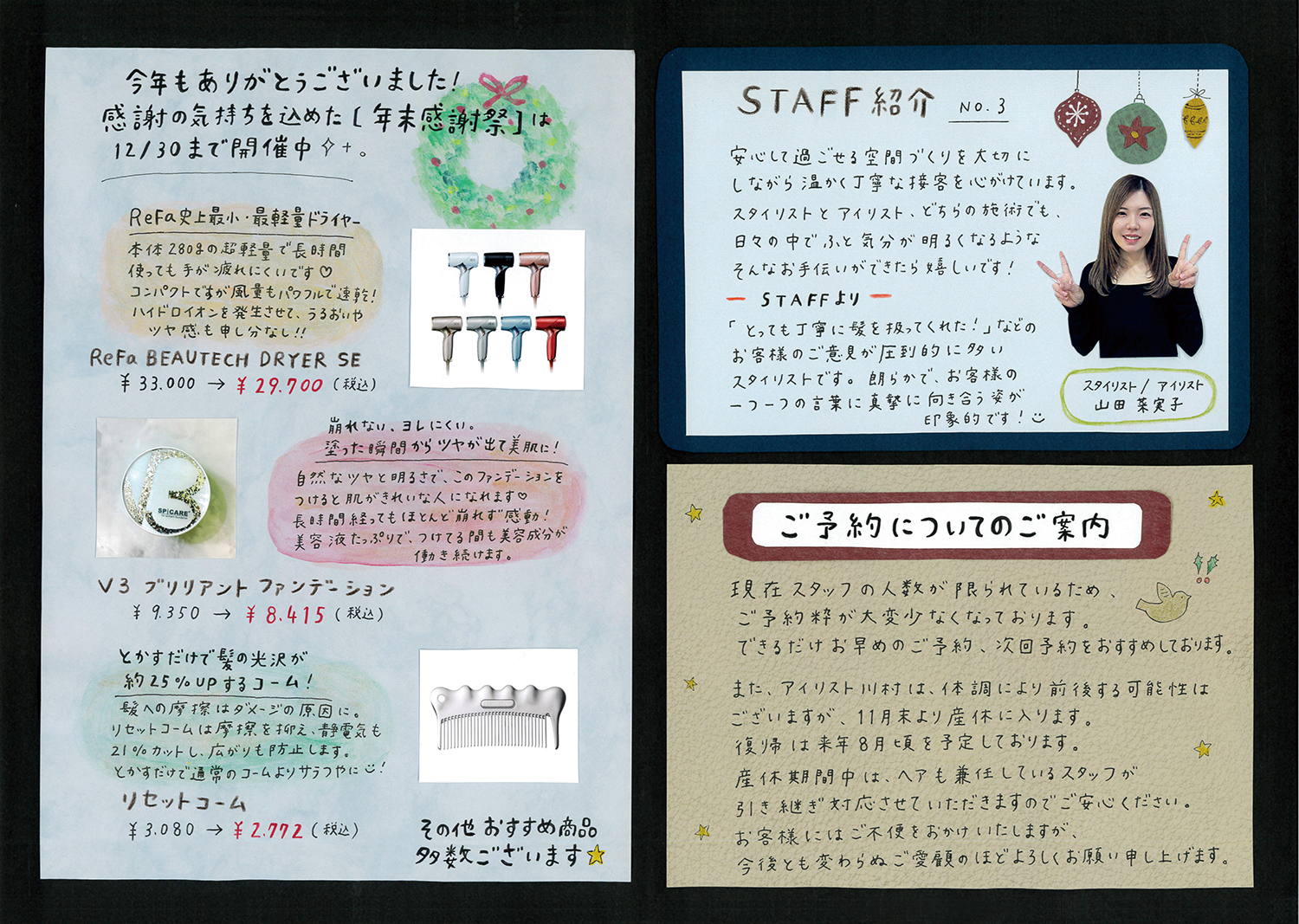 スタッフ手作りの新聞でサロンの最新情報をお届けします!ぜひご覧ください!(年4回発行)